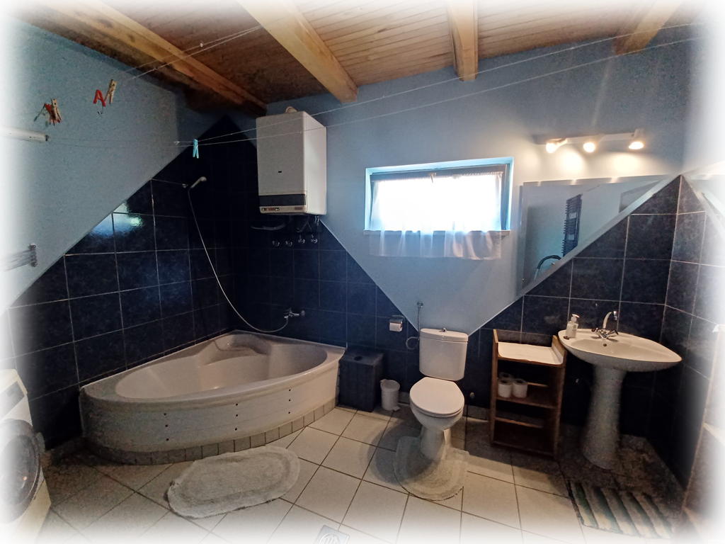 ....A fürdőszobában egy 140x140 cm- es sarokkád és mosogatógép, WC, mosdó található...