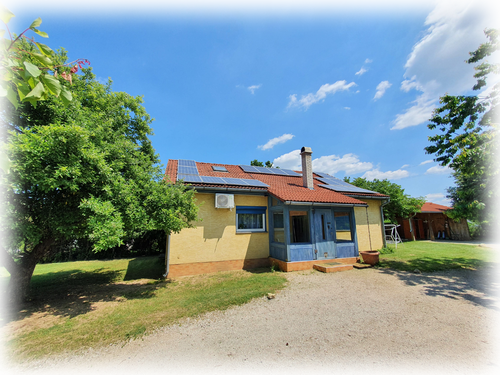 A kertes ház egy 900m2- es, körbekerített, nyugodt fekvésű telken fekszik.