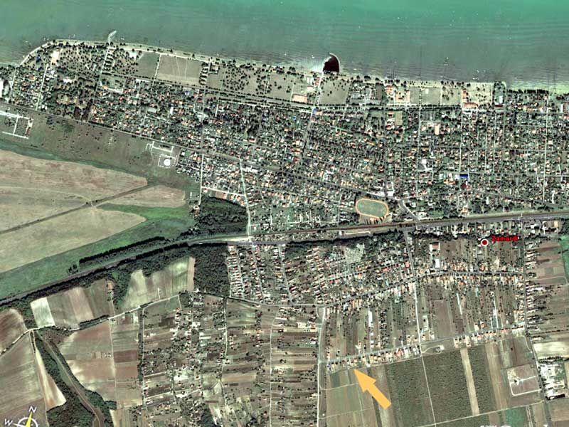 Zamárdi műholdas képe, a sárga nyíl azt mutatja, hol található a kiadó ház/ nyaraló...